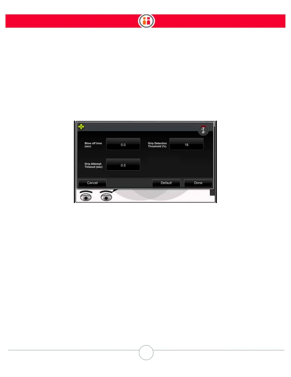• Grip Attempt Timeout (sec): Duration in which a vacuum end effector attempts to