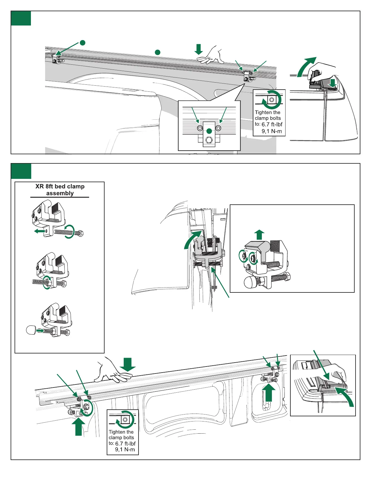 retractable cover with the XR rail system. The adjustable-back clamps must be positioned