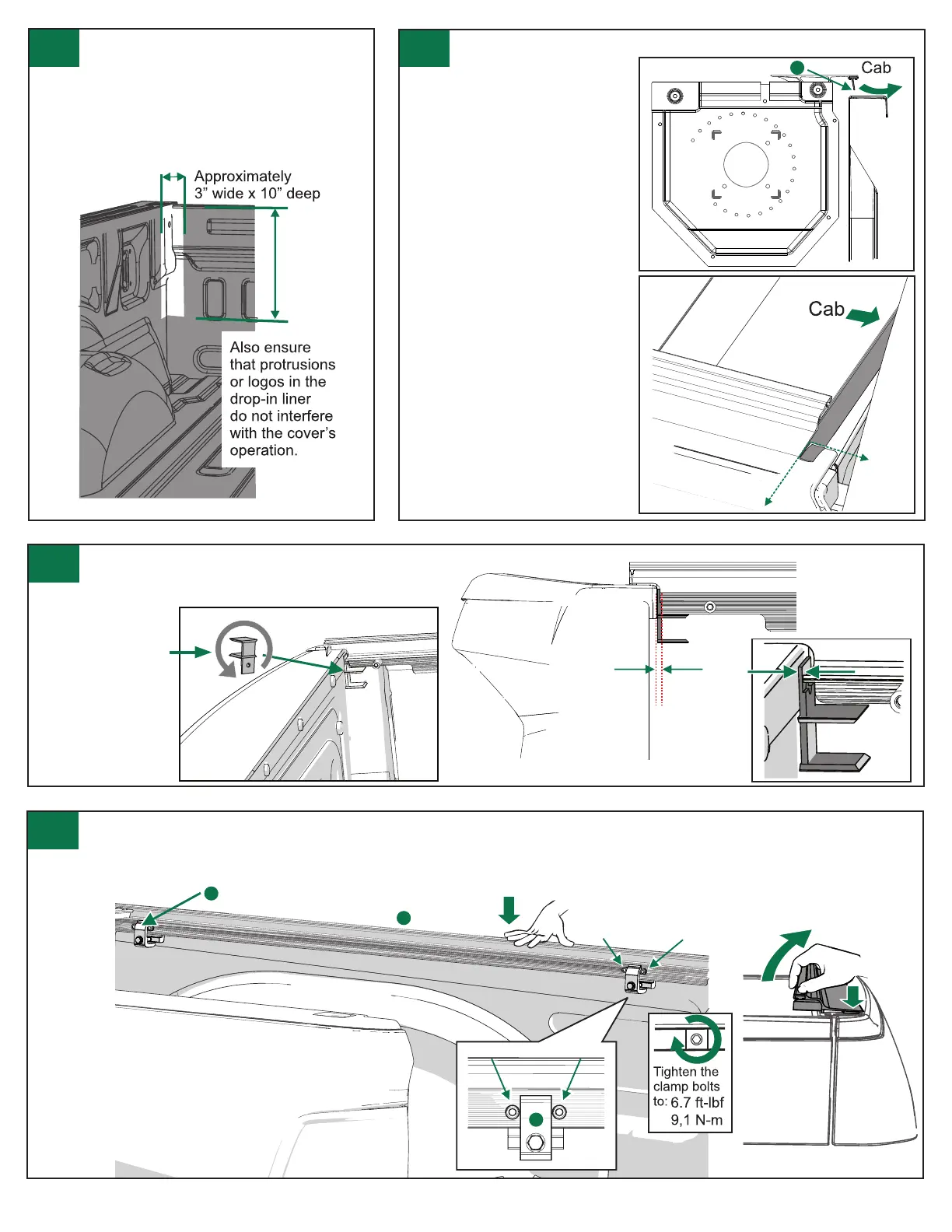Position the clamps (P) between the adjustment screws. Using a 9/16” or 1/2” wrench (depending on your clamps), tighten
