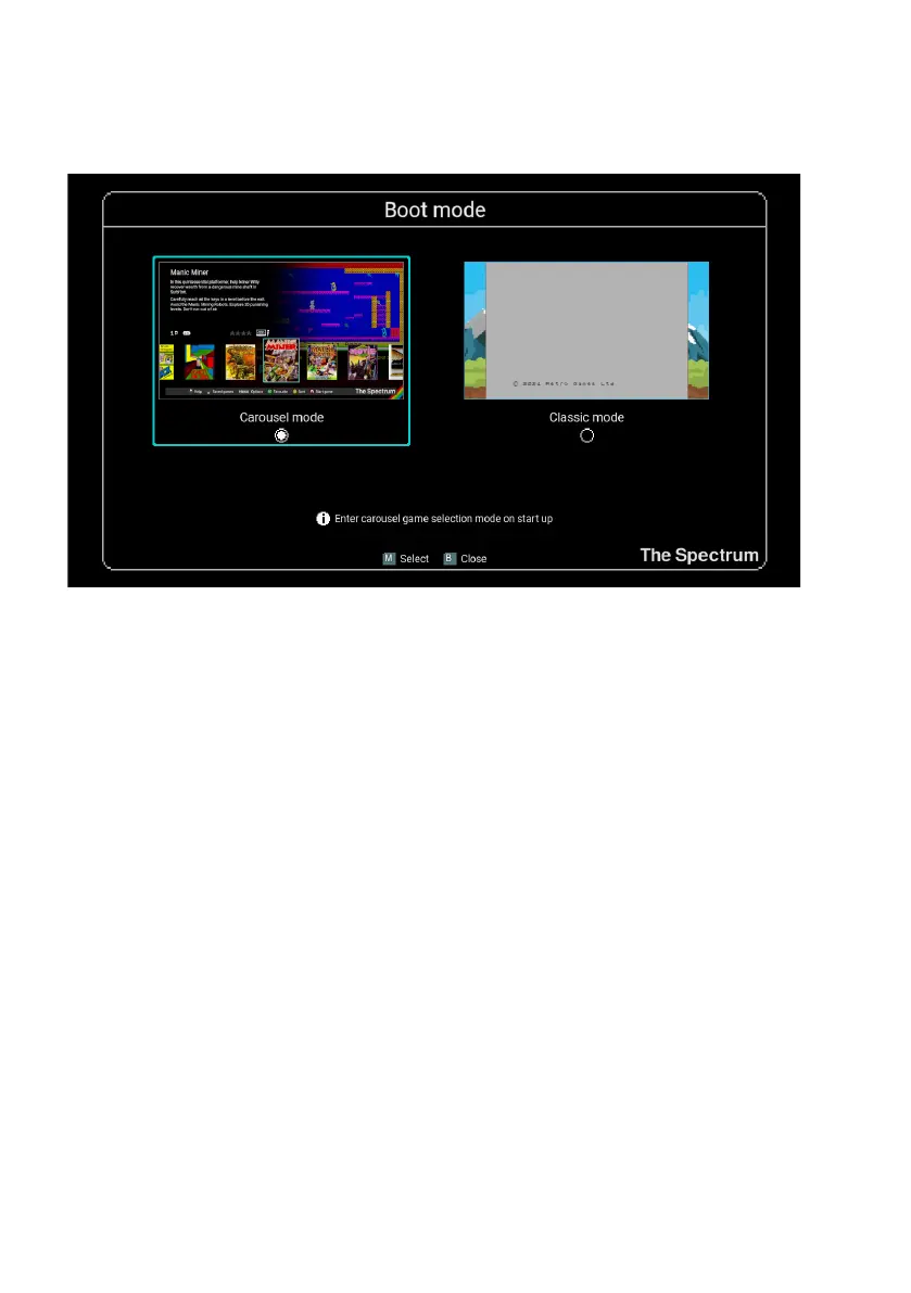 The Boot mode menu allows you to change whether The Spectrum starts in Classic