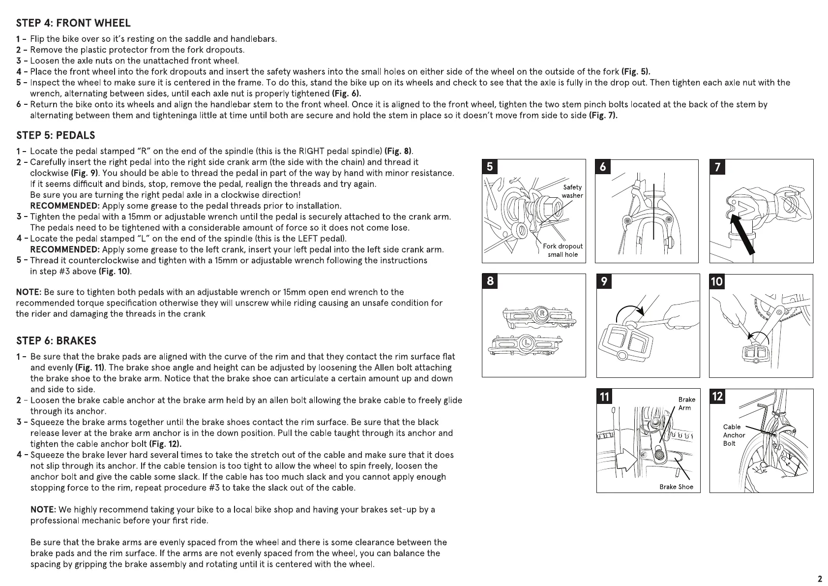 NOTE: We highly recommend taking your bike to a local bike shop and having your brakes set-up by a