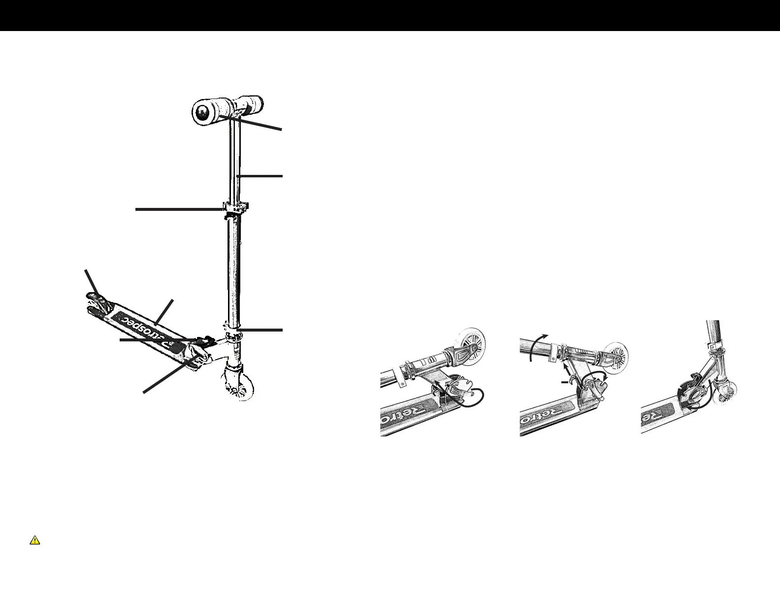 WARNING: Keep fingers clear of the pivoting mechanism when folding/unfolding the scooter.