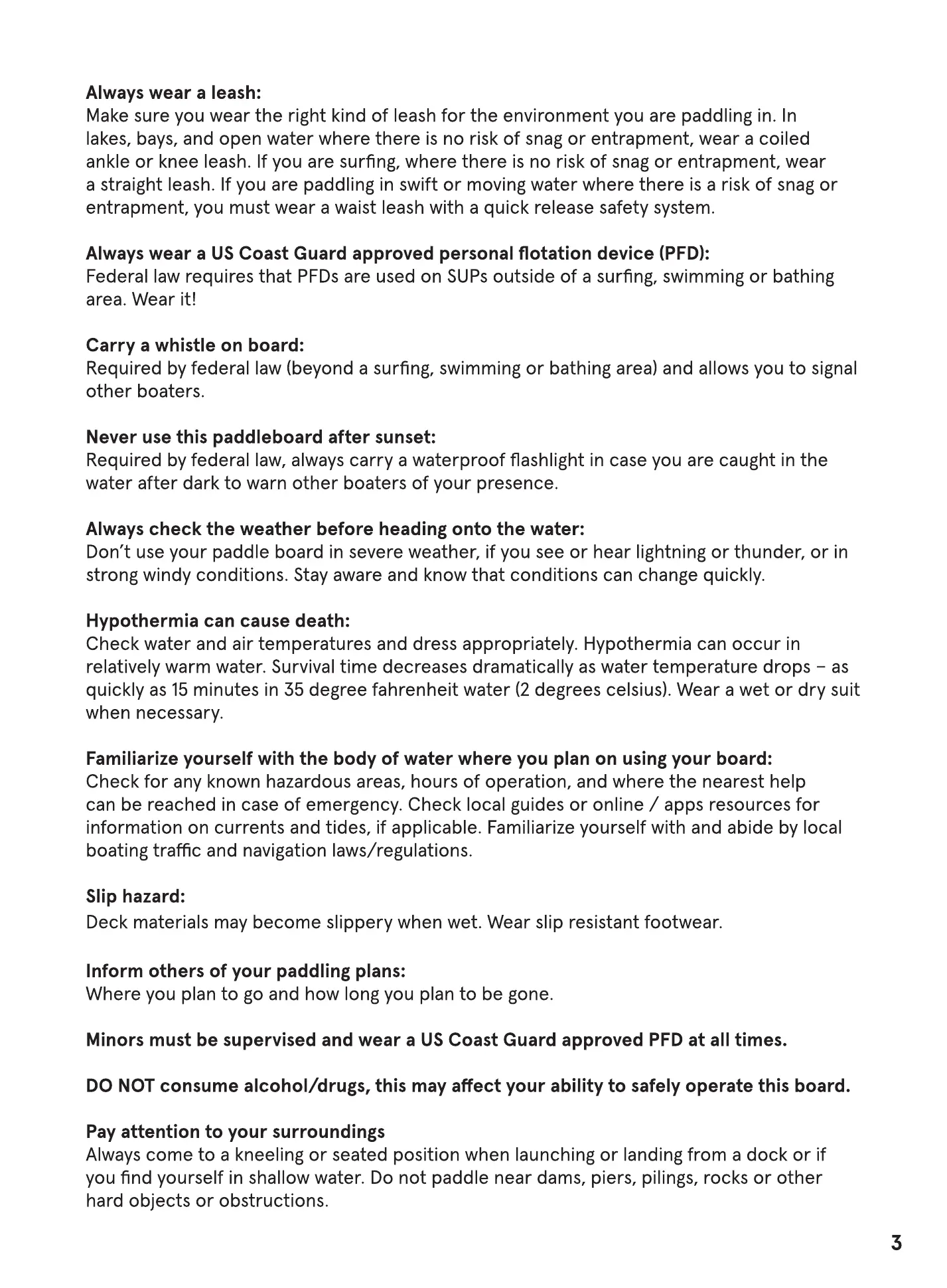 Federal law requires that PFDs are used on SUPS outside of a surfing, swimming or bathing