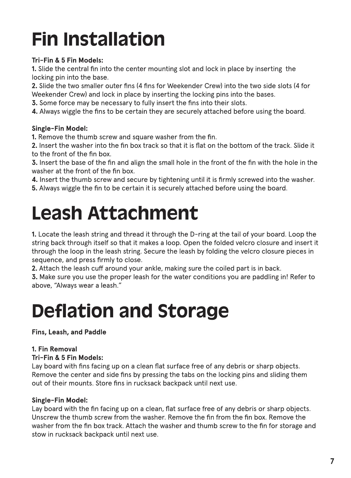 5. Always wiggle the fin to be certain it is securely attached before using the board.