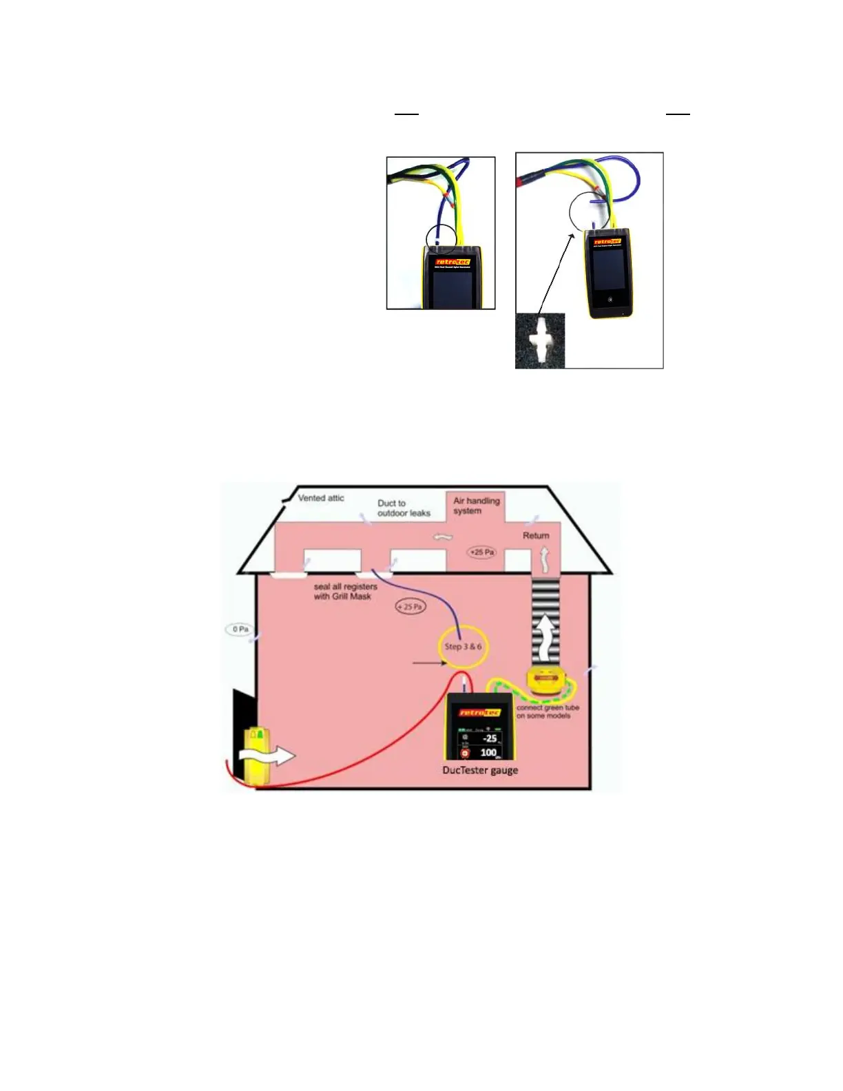 31. Record duct leakage, “Flow” on the gauge, when you’re confident the building and duct pressures
