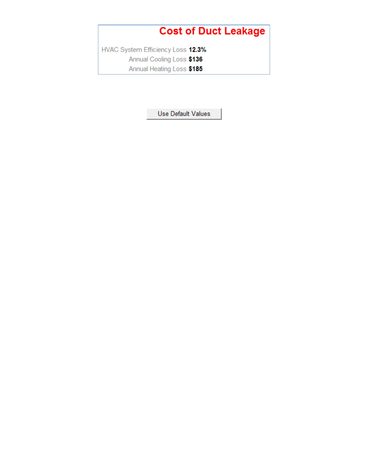 Note: The "Annual Cooling Loss" and "Annual Heating Loss" in the Duct Leakage Report are for