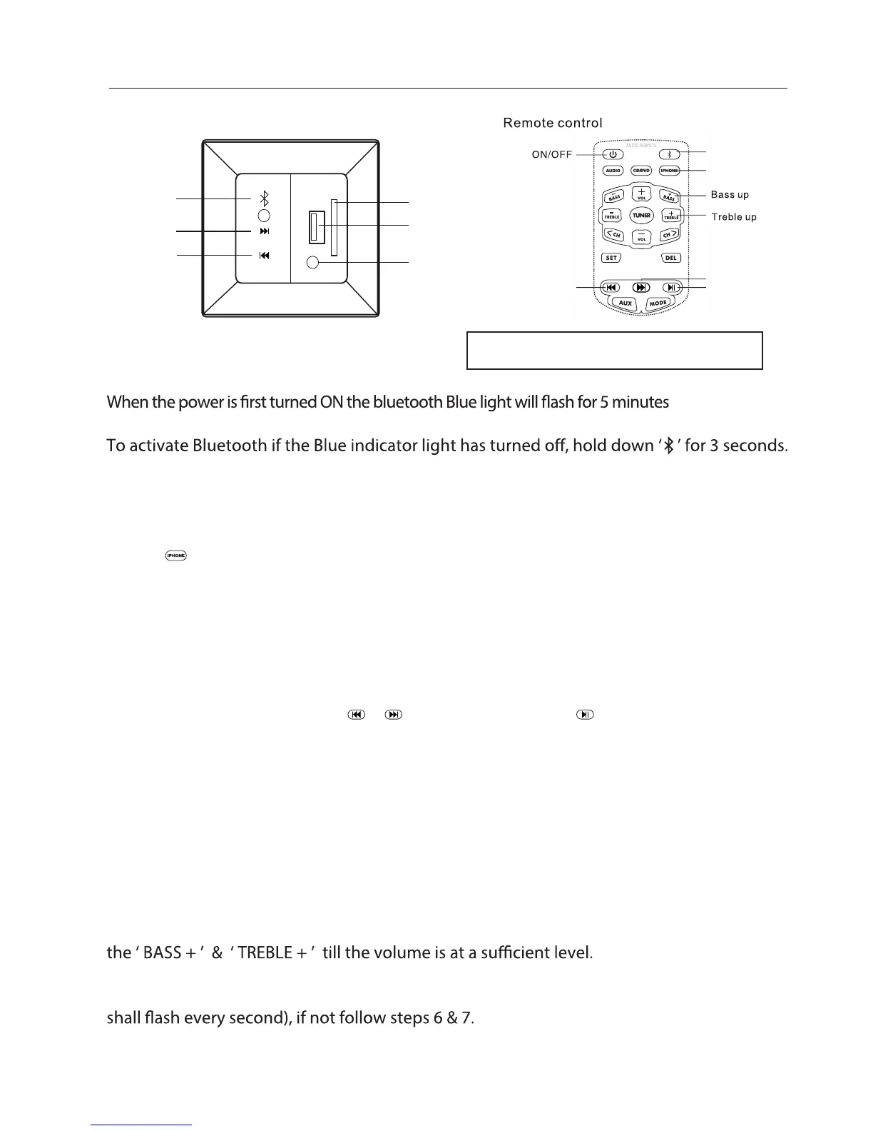 To MAXIMISE Volume Output press the BASS+ & TREBLE+
