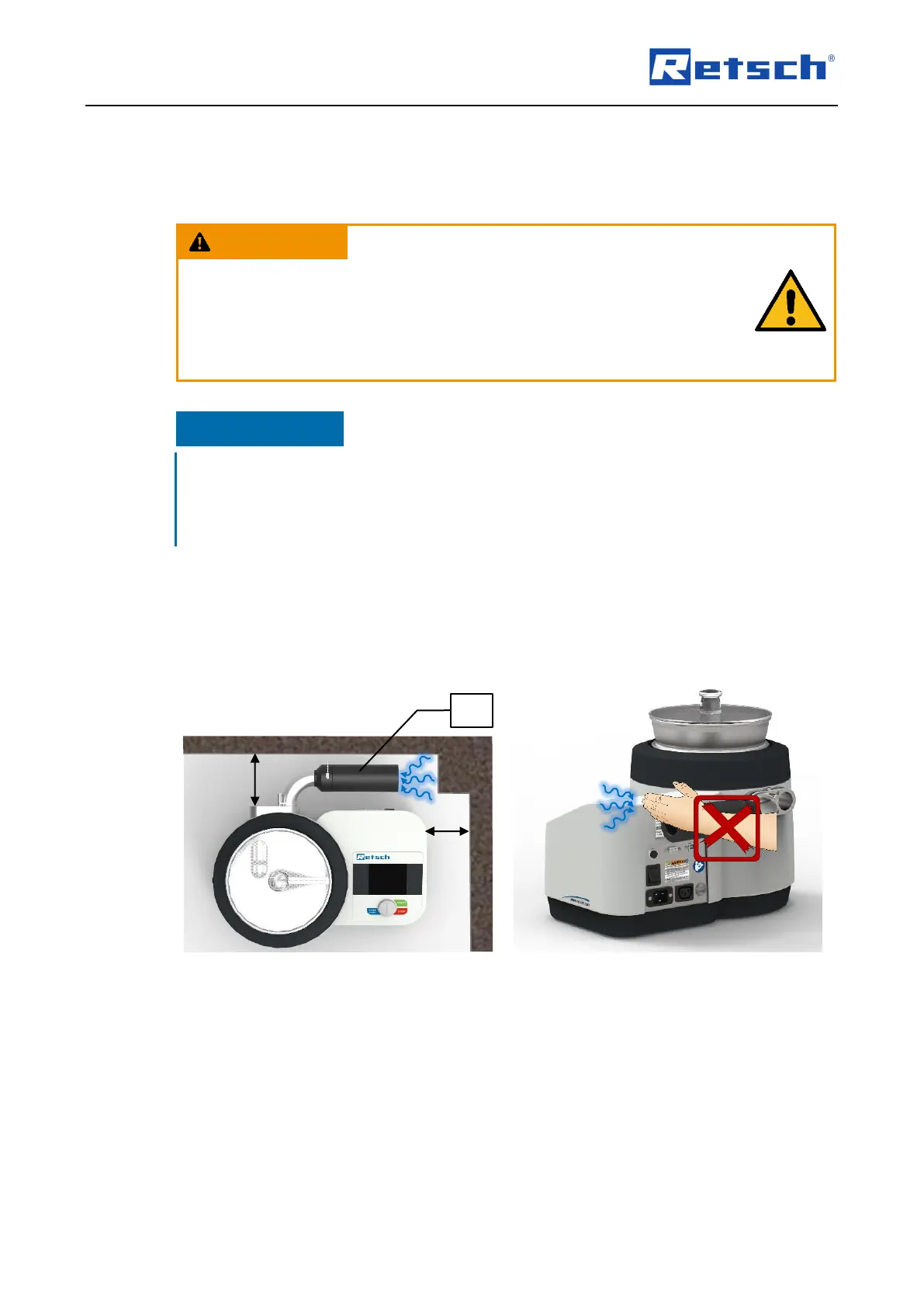 Fig. 2: Installation of the device: keep the suction opening clear!
