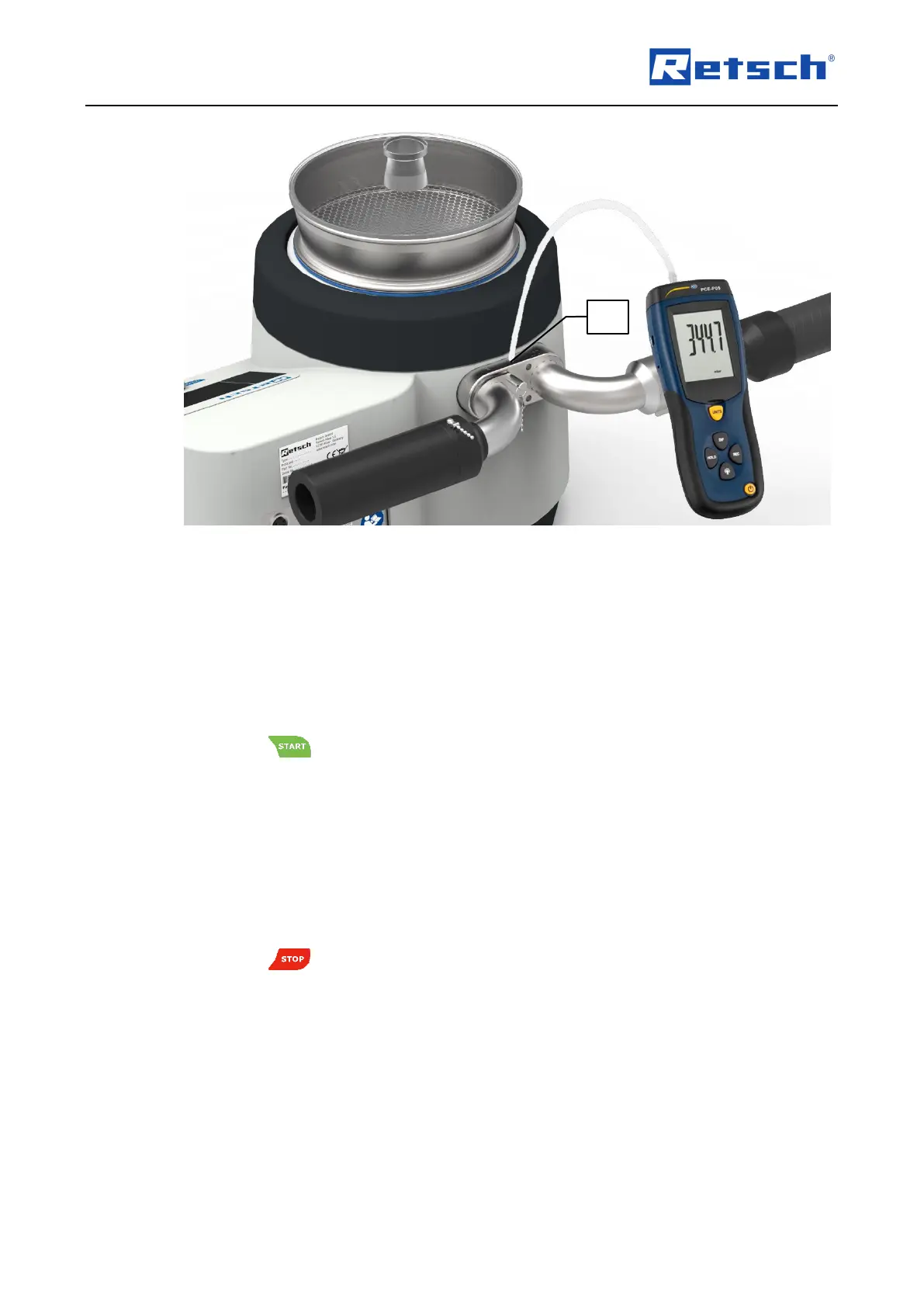 Connect a suitable differential pressure manometer (e.g. PCE-P05) to the measuring port