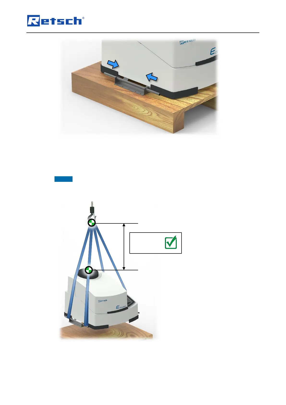 NOTICE The housing can be damaged if the lifting straps are too short. The four lifting straps