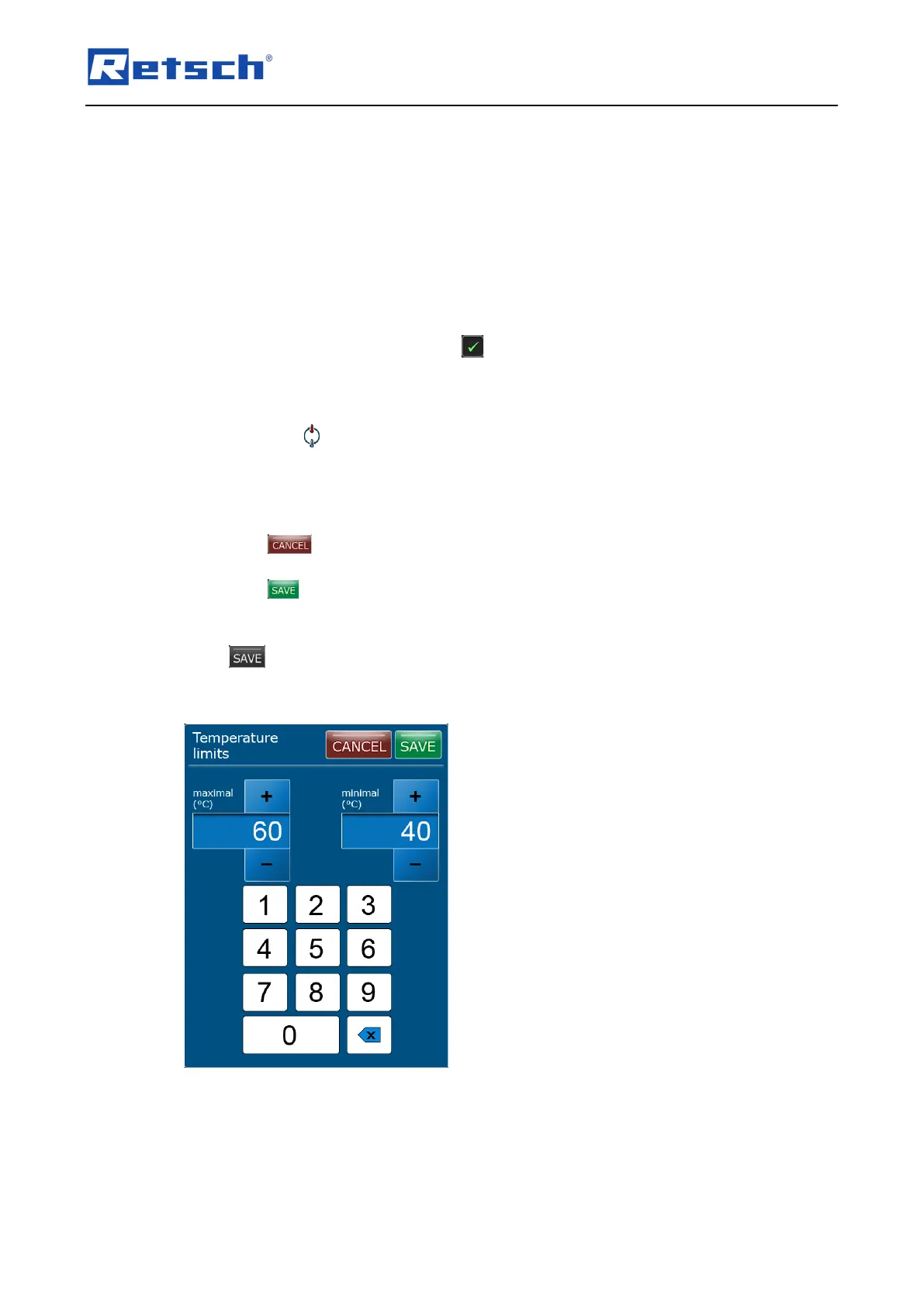of the temperature limits opens. Alternatively, the direct data entry window can also be