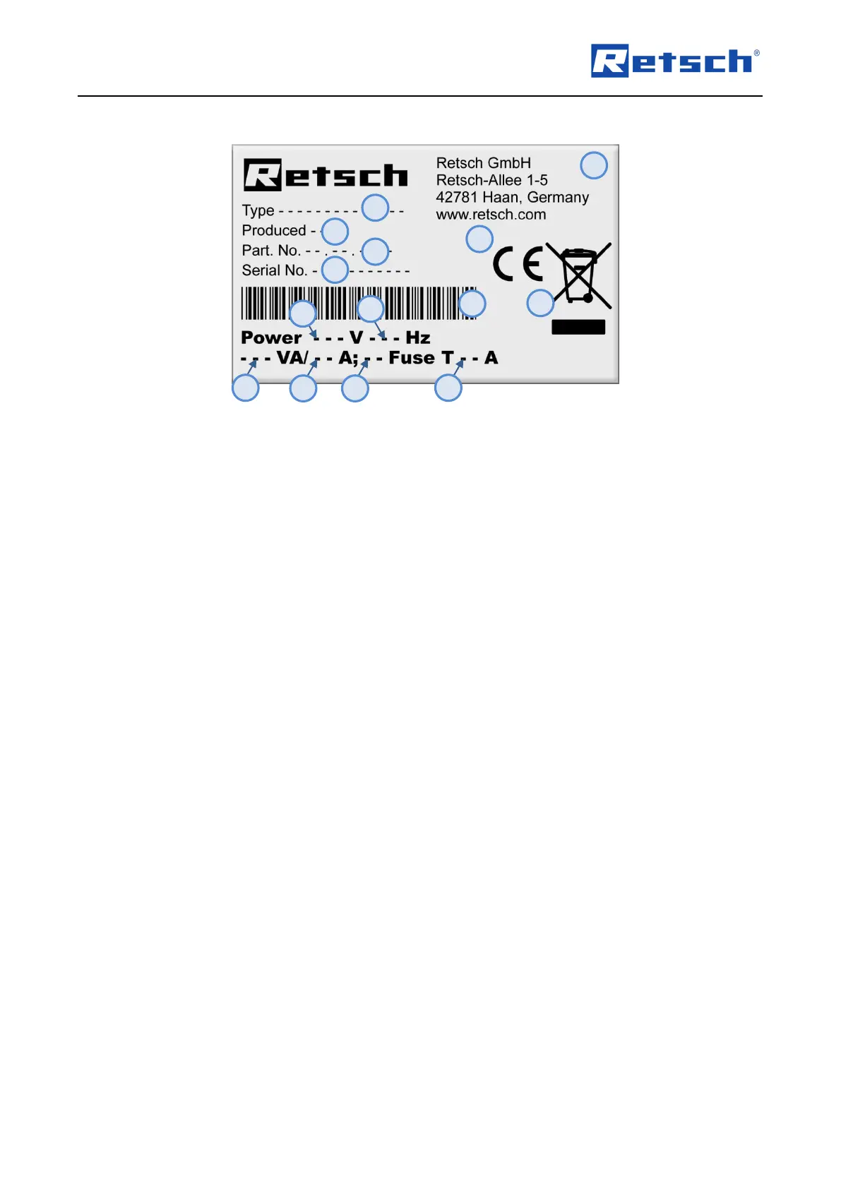 Retsch GM 200 - Type Plate Description