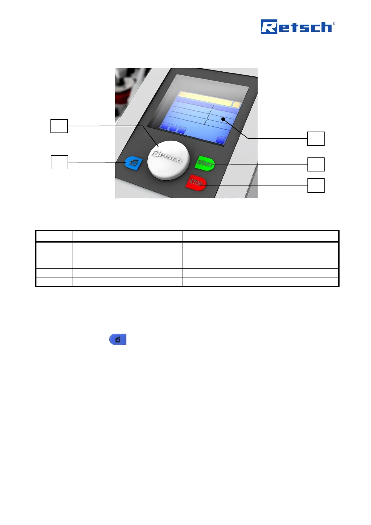 Retsch PM100 - Operating Elements and Displays; Overview Table of the Operating Elements and the Display; Opening the Device
