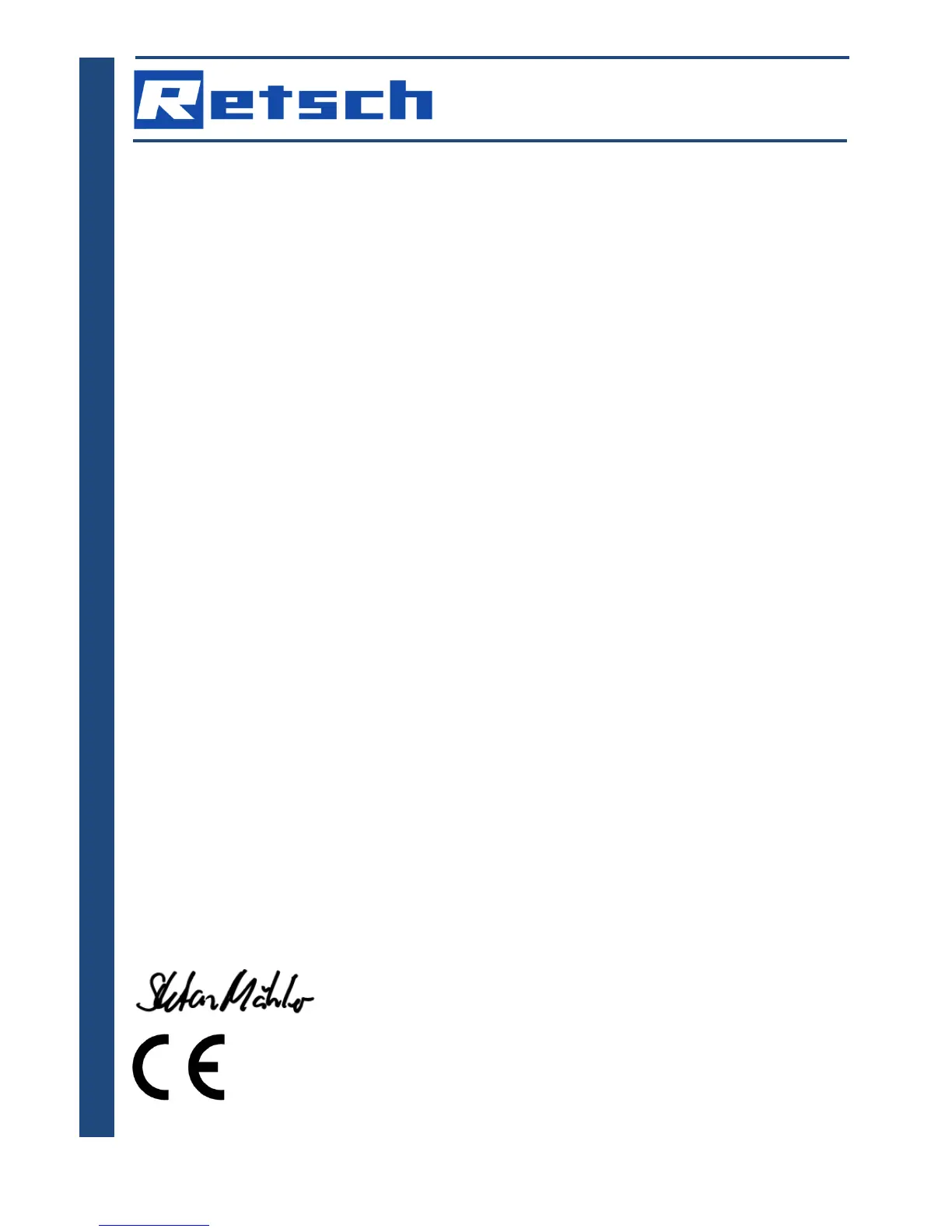 The CE-conformity of the Retsch Planetary Ball Mills Type PM 100 and PM 200 is assured herewith.