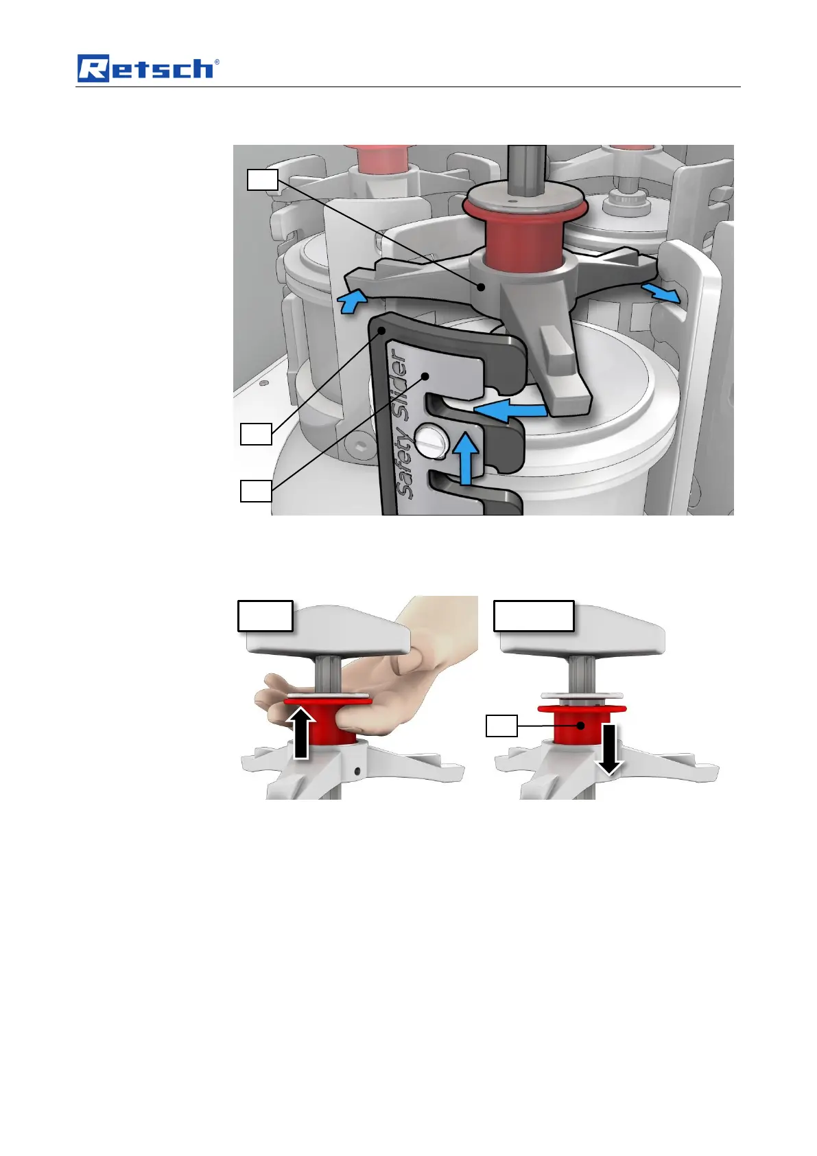 • Pull the red sleeve (N1) upwards and clamp the grinding jar by twisting the