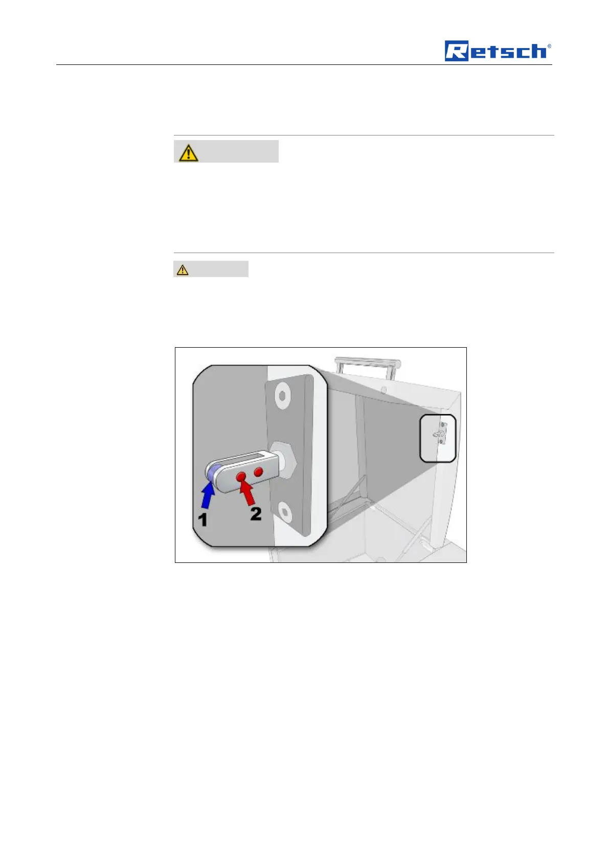 • Clean the magnets (2) on the closing pin.