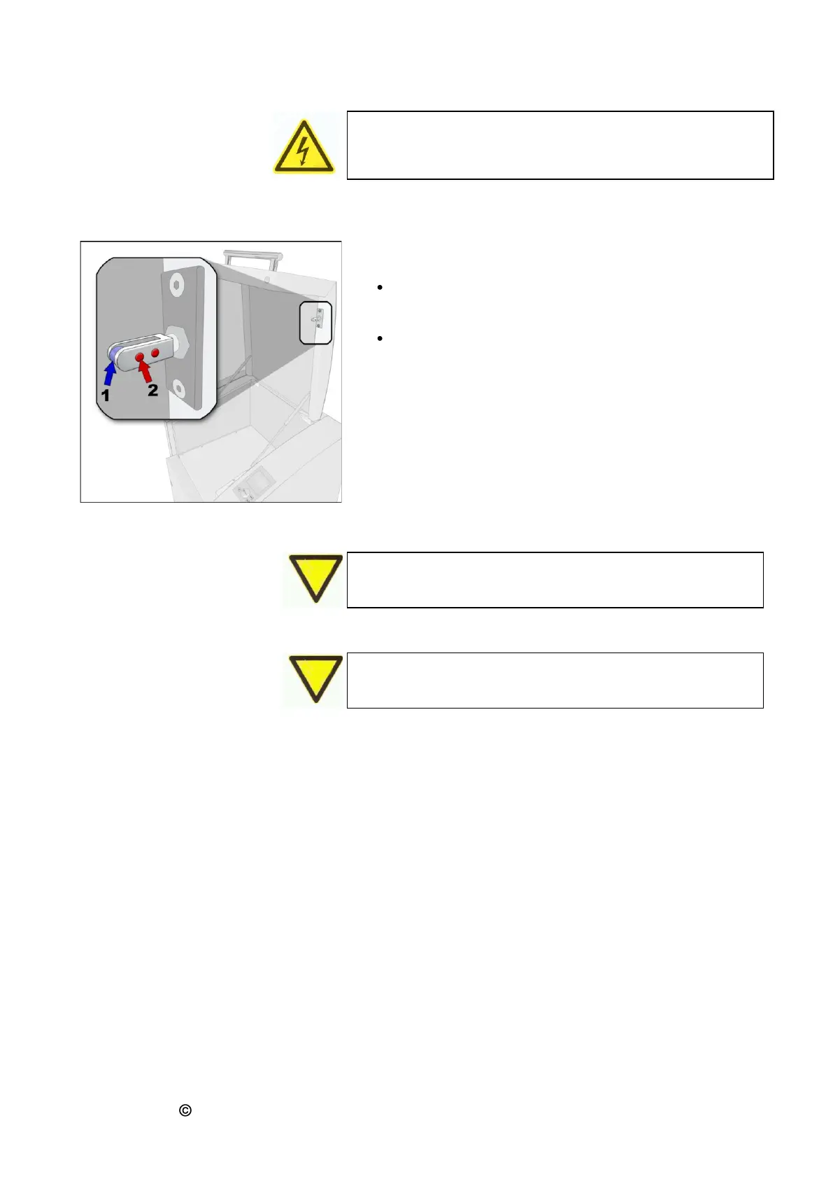Check roller 1 of the closing pin for easy running and