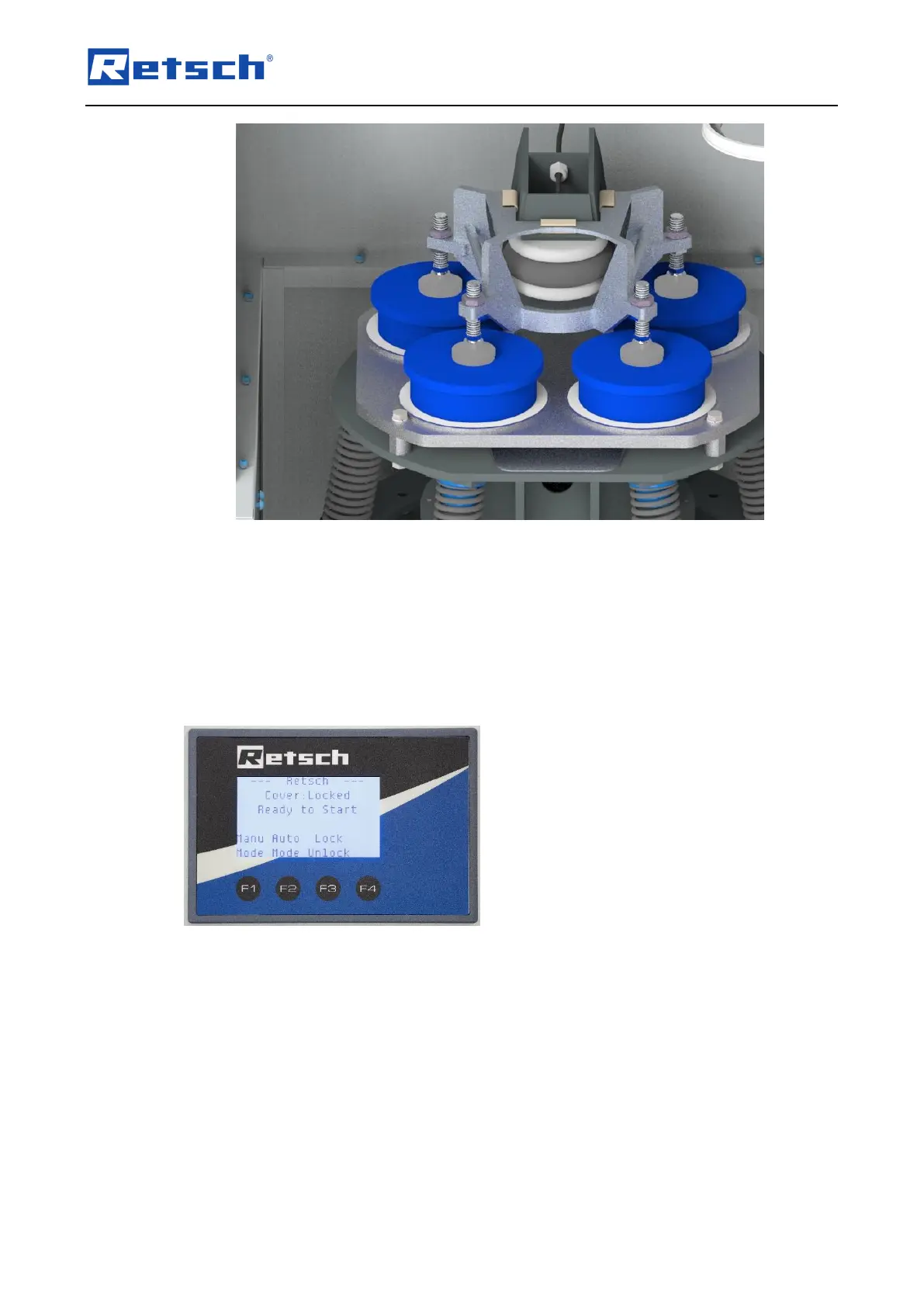 beneath the bellow and that the four feet rest centrally on the grinding jars!