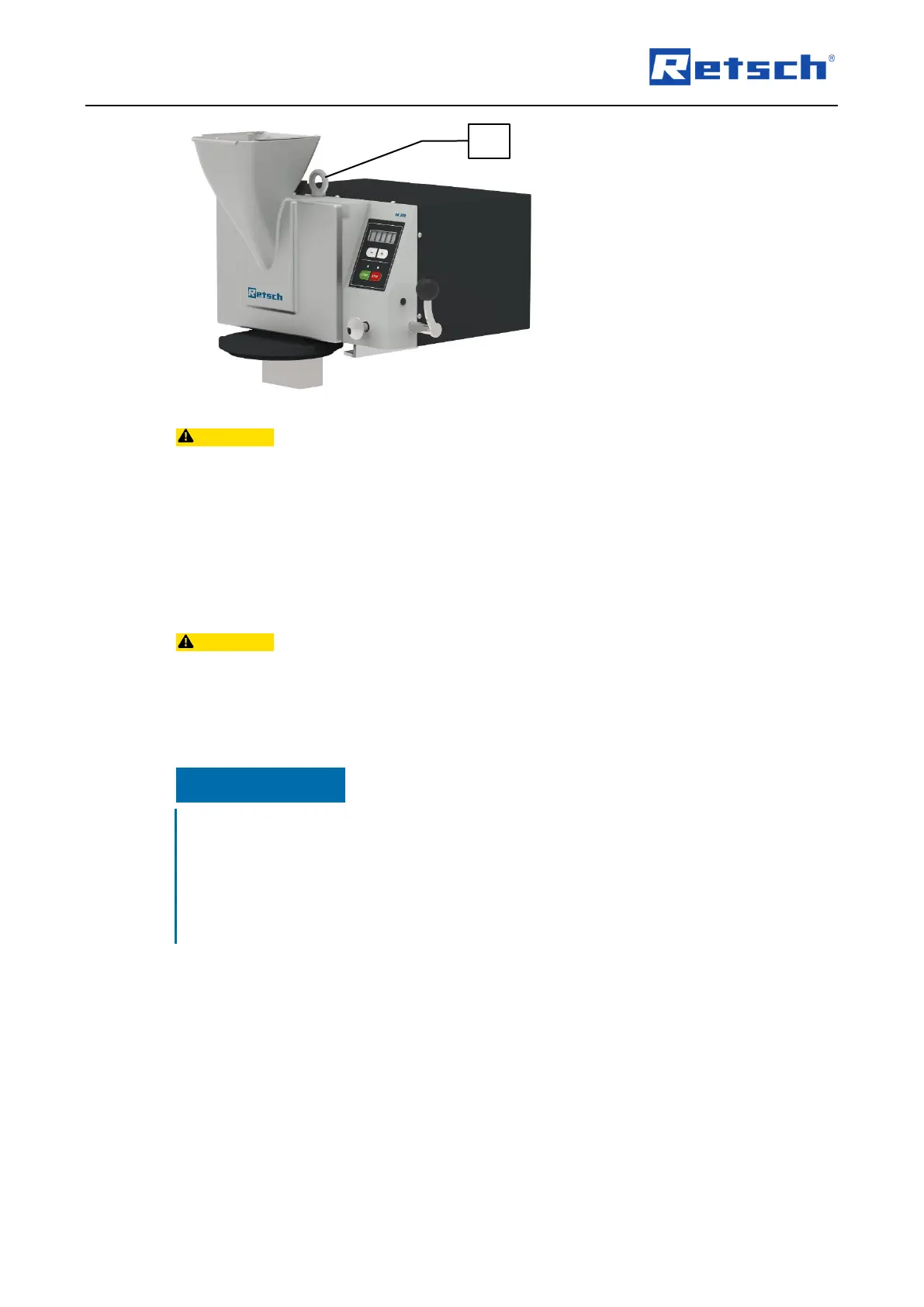 CAUTION Only use suitable hoist that is designed for the weight of the device.