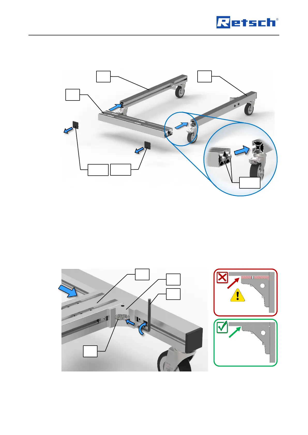 Use the two supplied M8x16 hexagon socket head screws (WK2) to screw the cross bar
