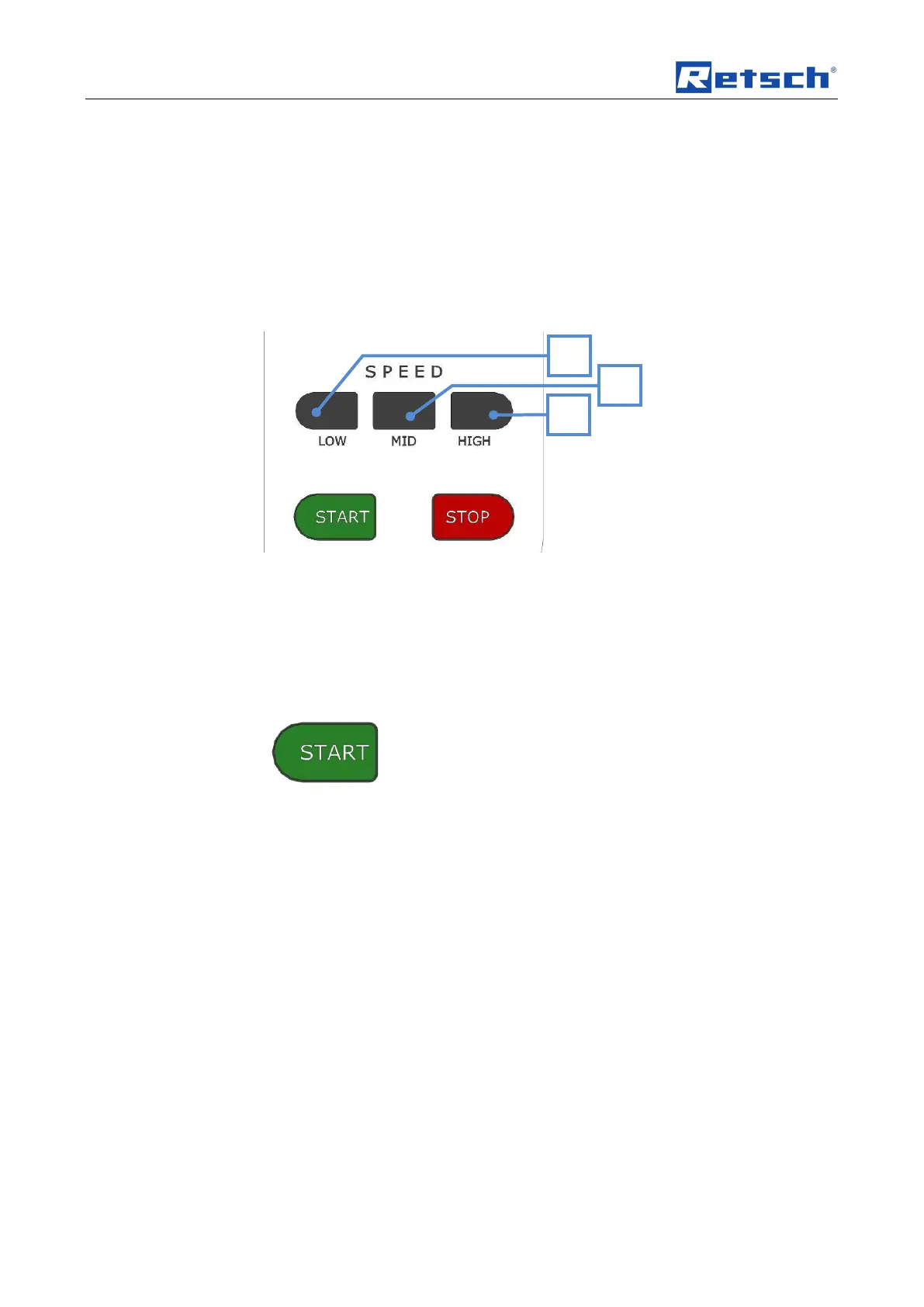 • Press the MID button (K3) for a speed of the rotor of 12000 revolutions per