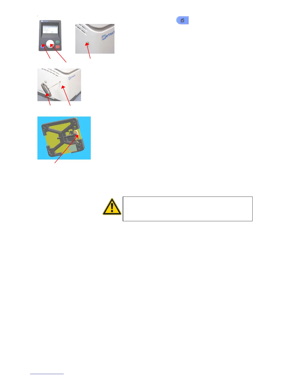 Never actuate the emergency unlocking feature whilst the machine is