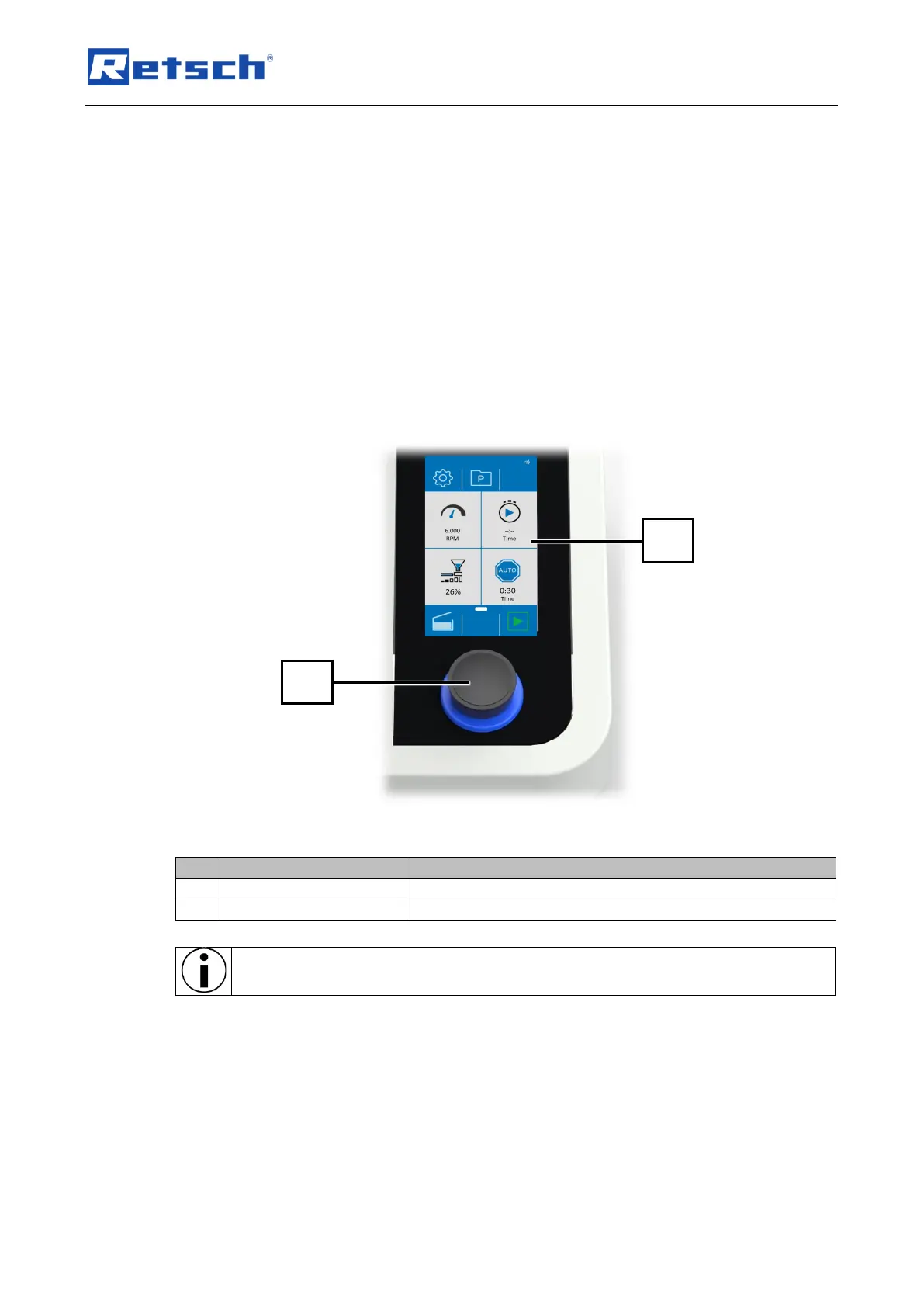 The background of the control dial lights up in blue when the touch display is used to