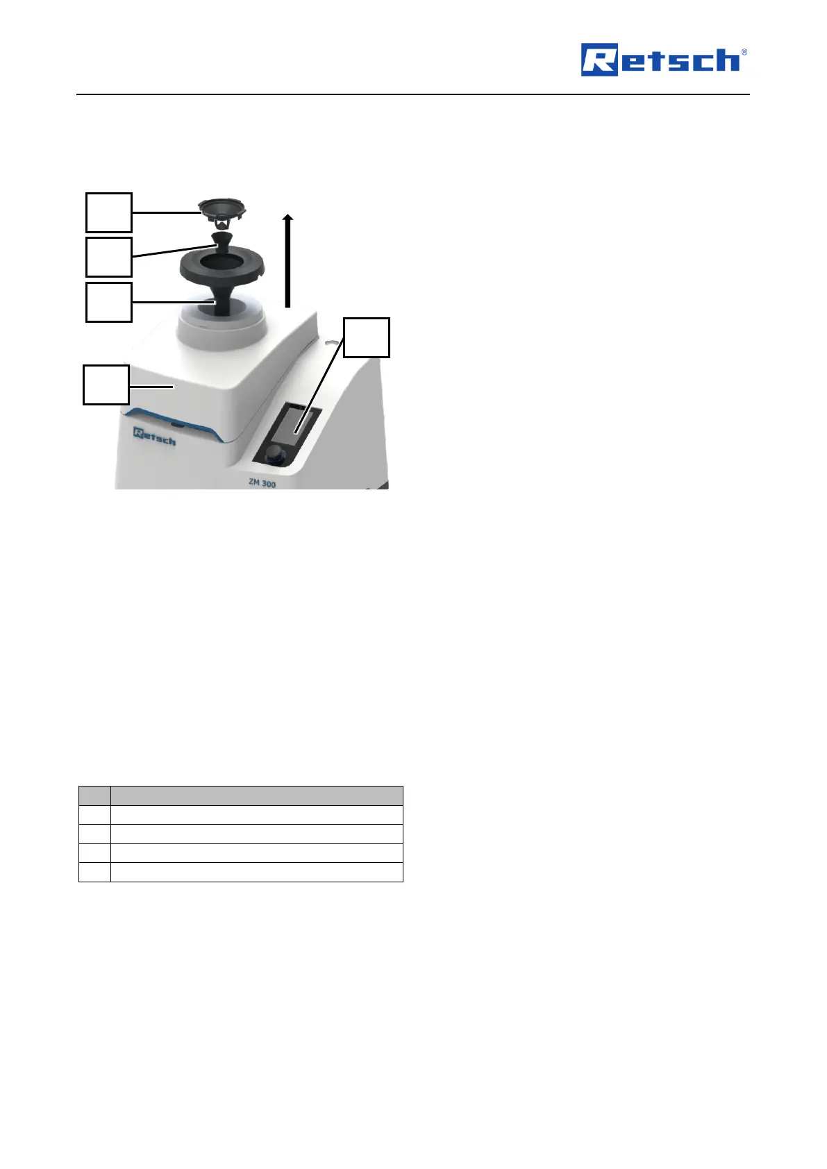 8. Insert the feed hopper (1) into device hood
