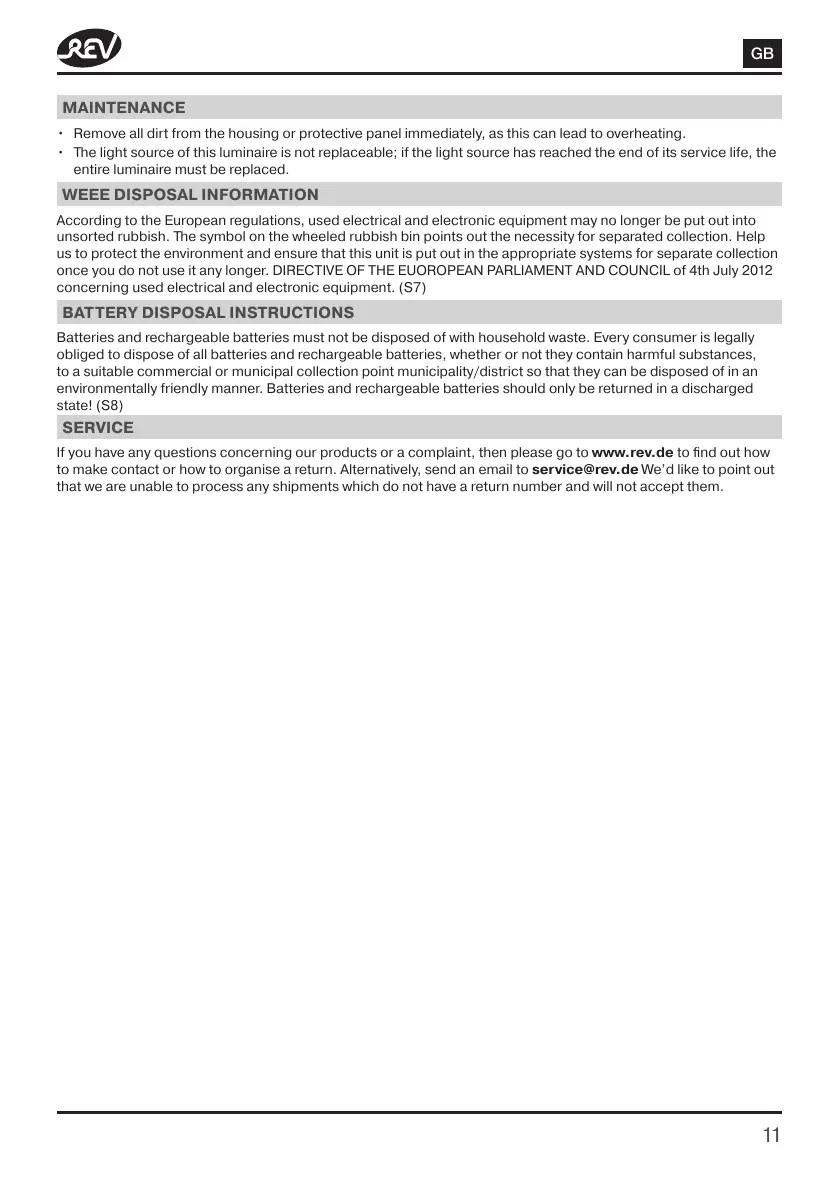 If you have any questions concerning our products or a complaint, then please go to www.rev.de to find out how