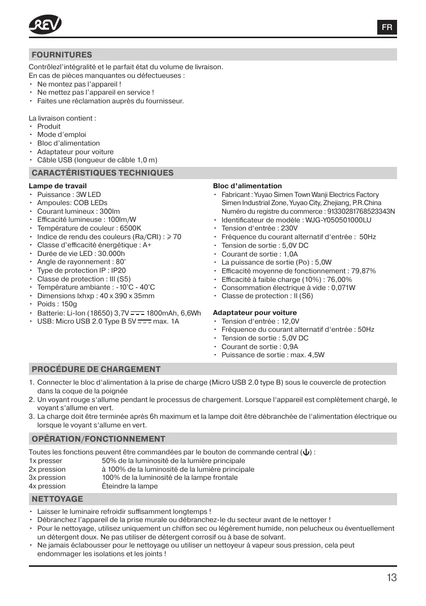 3. La charge doit être terminée après 6h maximum et la lampe doit être débranchée de l‘alimentation électrique ou
