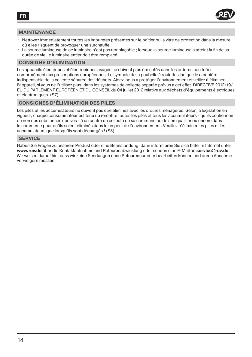 www.rev.de über die Kontaktaufnahme und Retourenabwicklung oder senden eine E-Mail an service@rev.de.