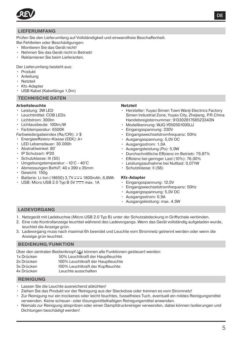 • Hersteller: Yuyao Simen Town Wanji Electrics Factory