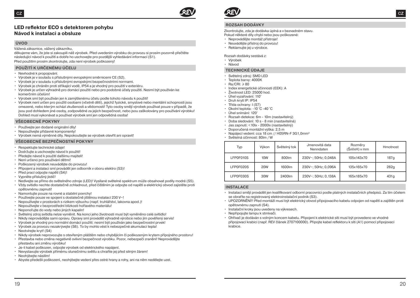 • Výrobek je chráněn proti stříkající vodě, IP54 a je vhodný pro použití vexteriéru.