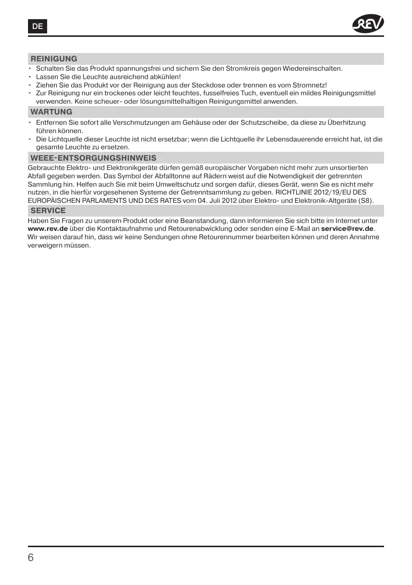 www.rev.de über die Kontaktaufnahme und Retourenabwicklung oder senden eine E-Mail an service@rev.de.