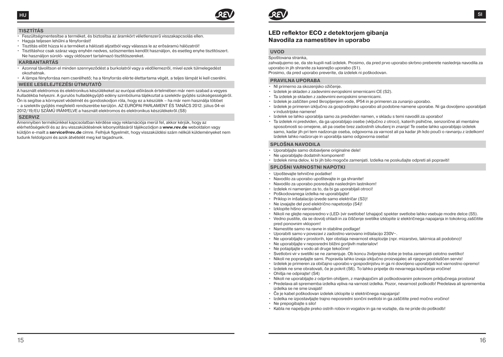 elérhetőségekről és az áru visszaküldésének lebonyolításáról tájékozódjon a www.rev.de weboldalon vagy