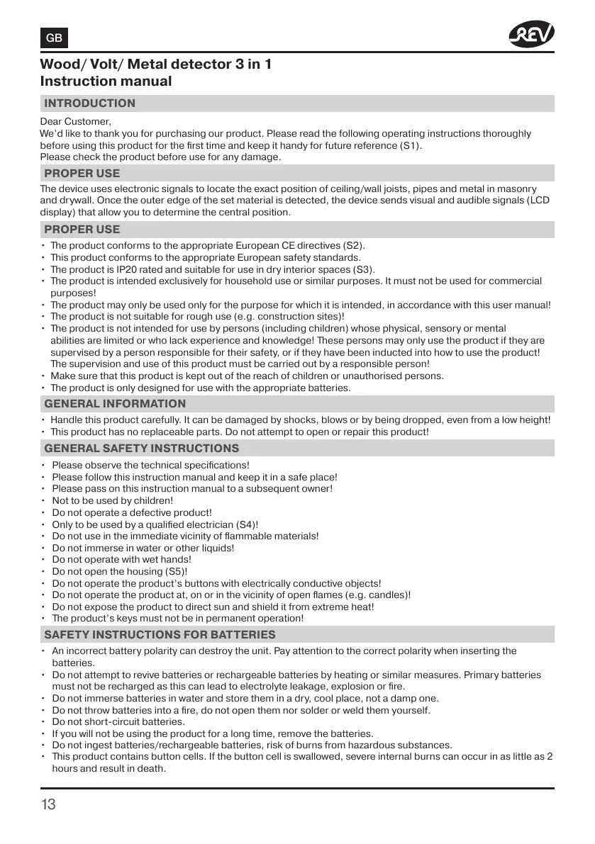 • The product is only designed for use with the appropriate batteries.