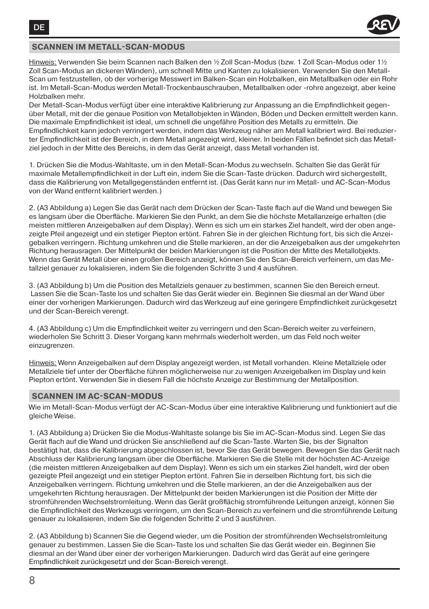 Zoll Scan-Modus an dickeren Wänden), um schnell Mitte und Kanten zu lokalisieren. Verwenden Sie den Metall-