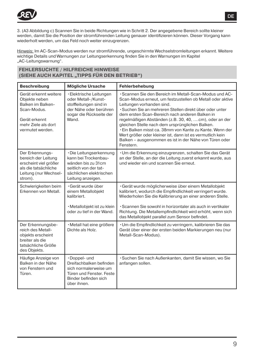 •Scannen Sie den Bereich im Metall-Scan-Modus und AC-