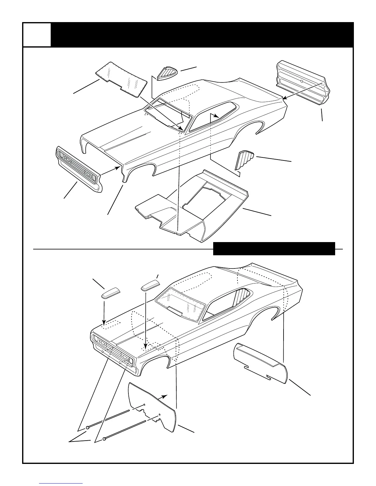 REVELL 4289 - Body Assembly; Body Shell Components; Cockpit and Fairings; Chassis Support Parts