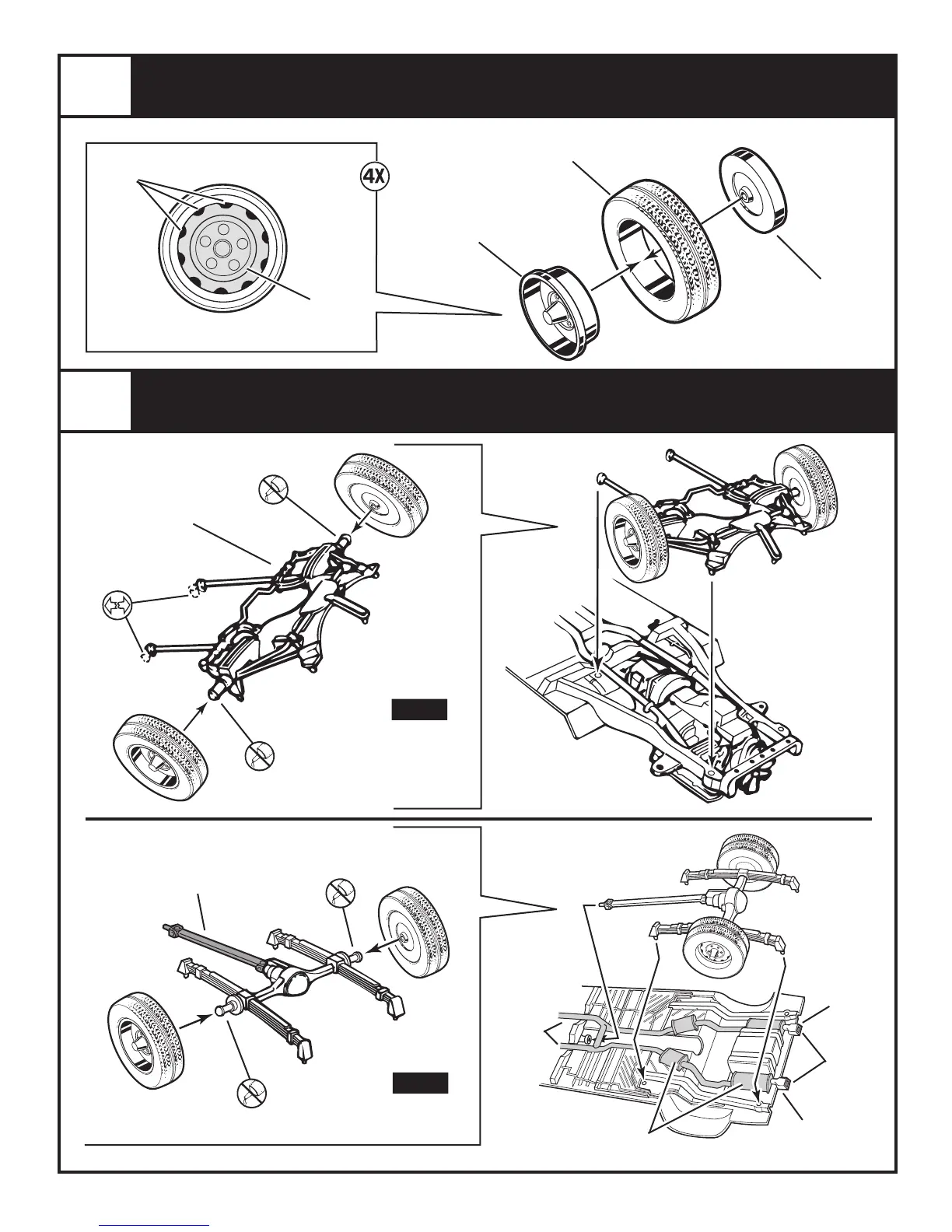 REVELL 71 Cuda - Wheel and Suspension Assembly; Wheel Component Assembly; Front Suspension Setup Procedure; Rear Suspension Setup Procedure