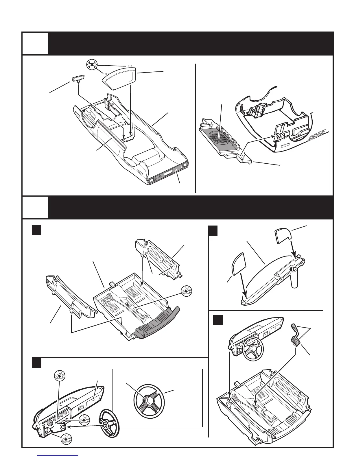 REVELL 71 Cuda - Windshield, Radiator & Interior Assembly; Windshield, Mirrors & Radiator Shroud; Interior Tub and Door Panel Installation; Dashboard and Steering Wheel Fitment