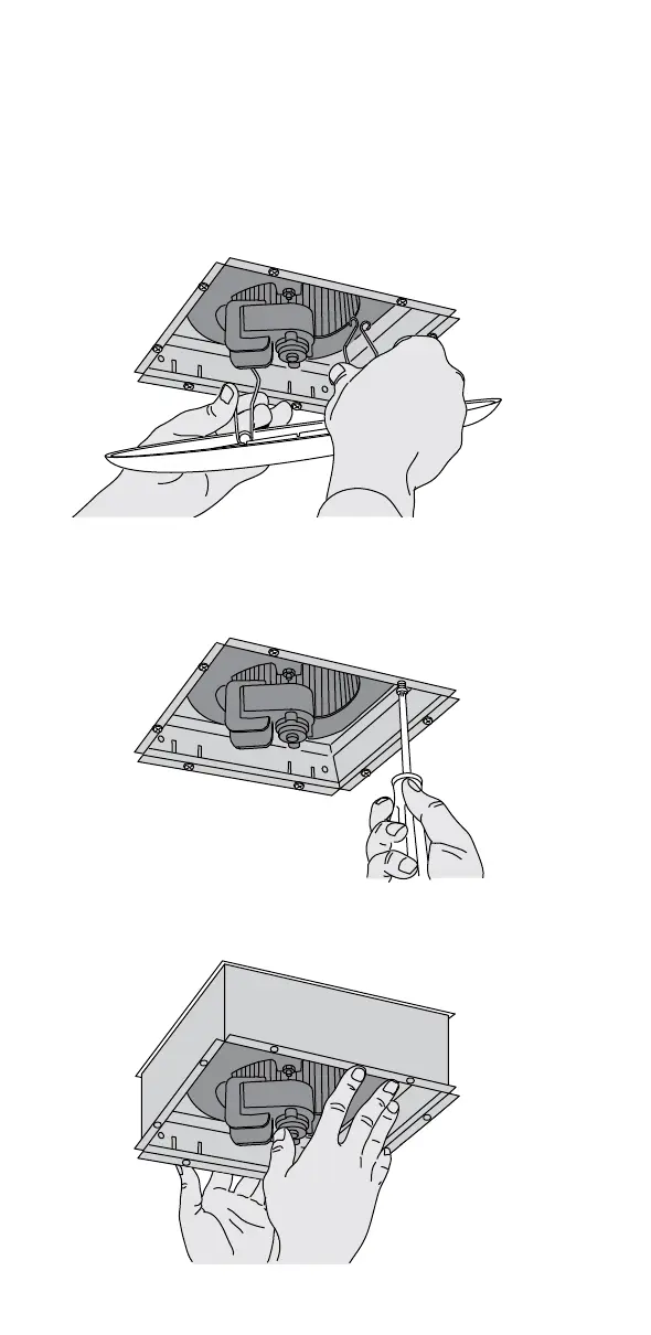 2.) Remove the grille from the existing fan. Pull the grille down to expose it’s two