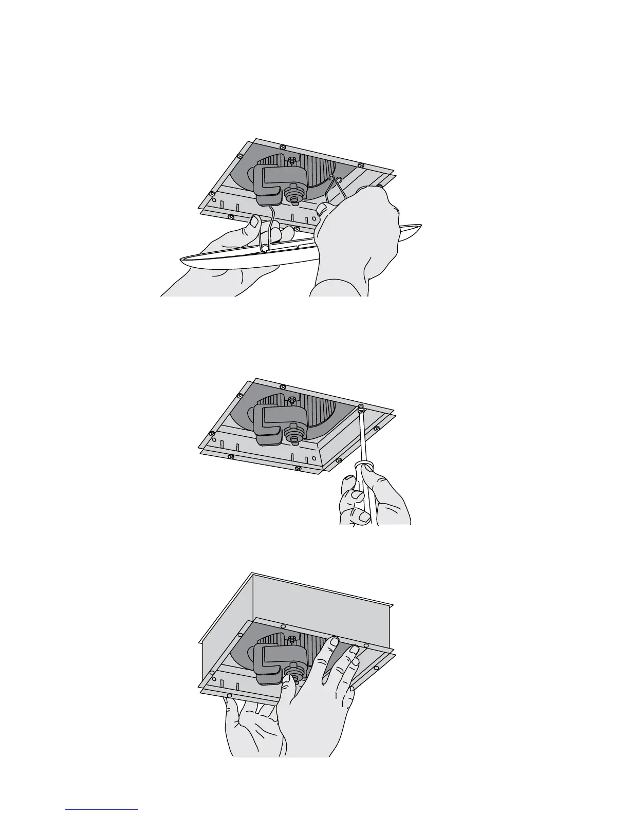 2.) Remove the grille from the existing fan. Pull the grille down to expose it’s two