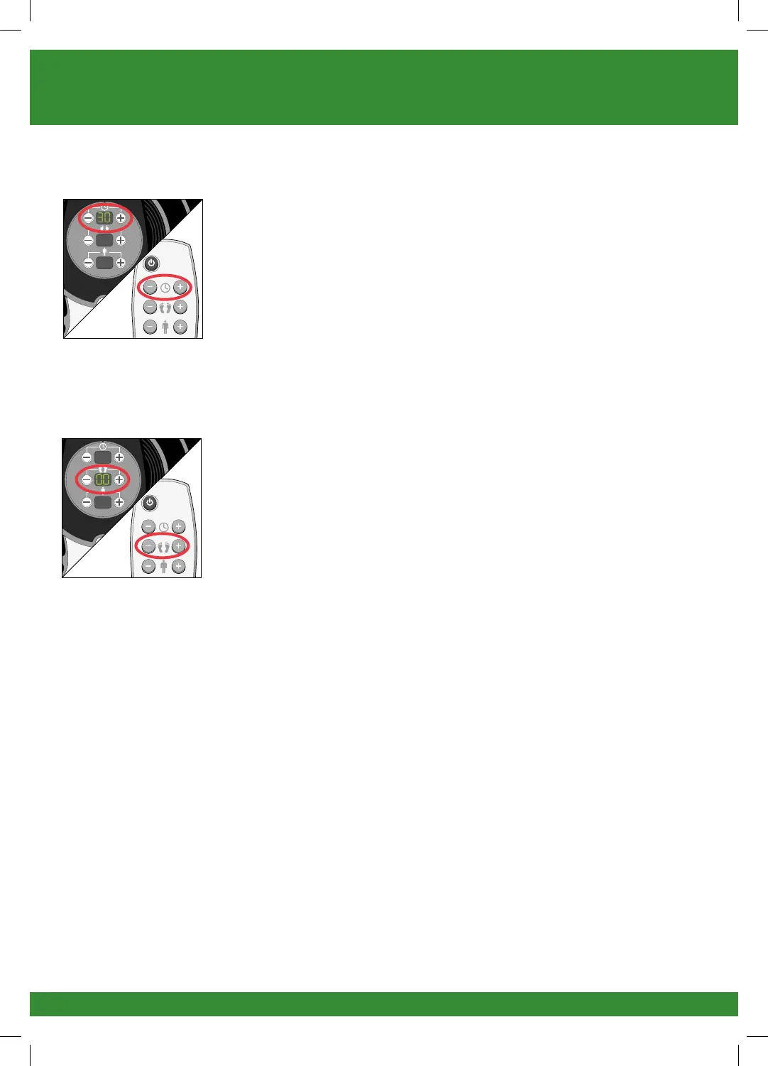 h Press the foot pad intensity (+) button until it is at the