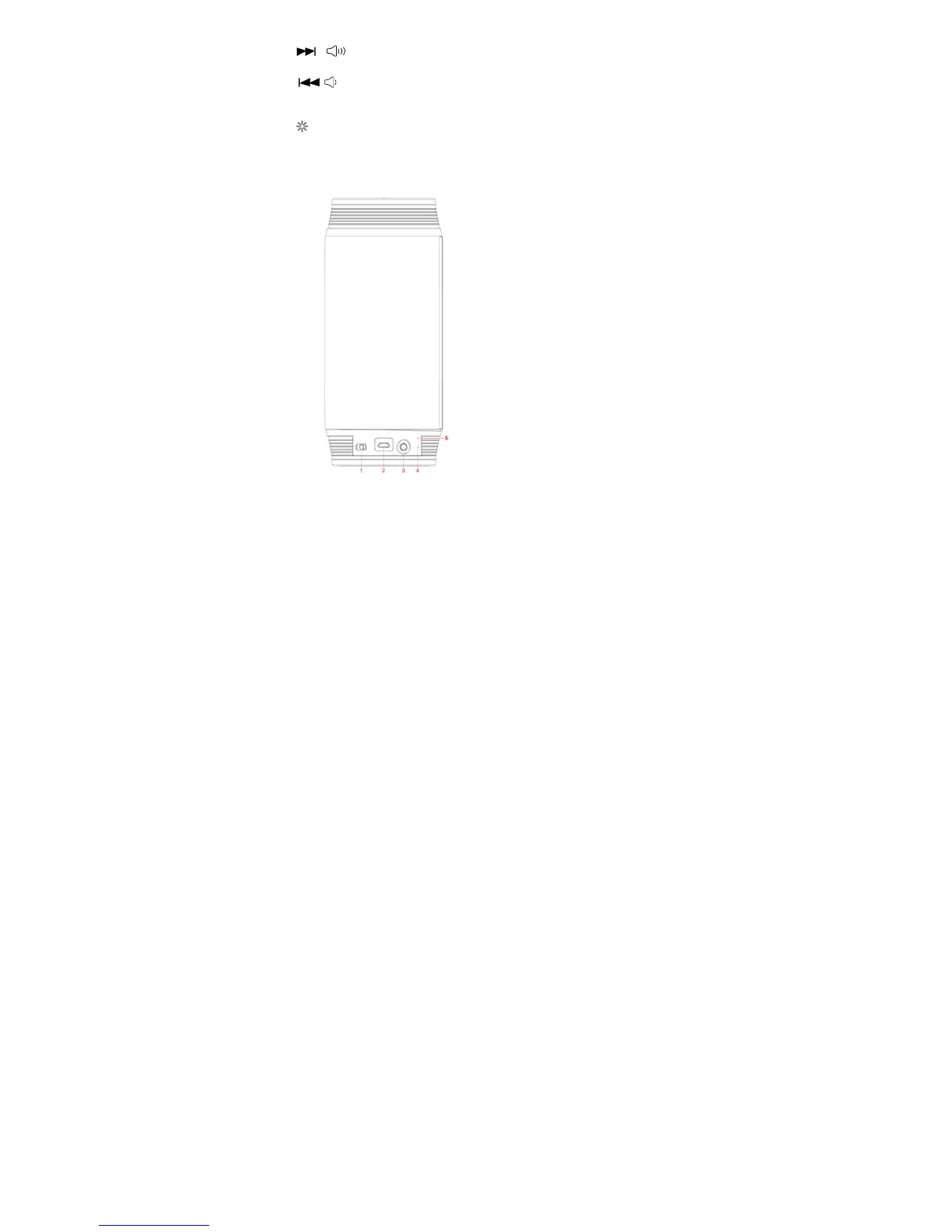 3. AUX IN: External audio source input (Spec: 3.5mm jack)