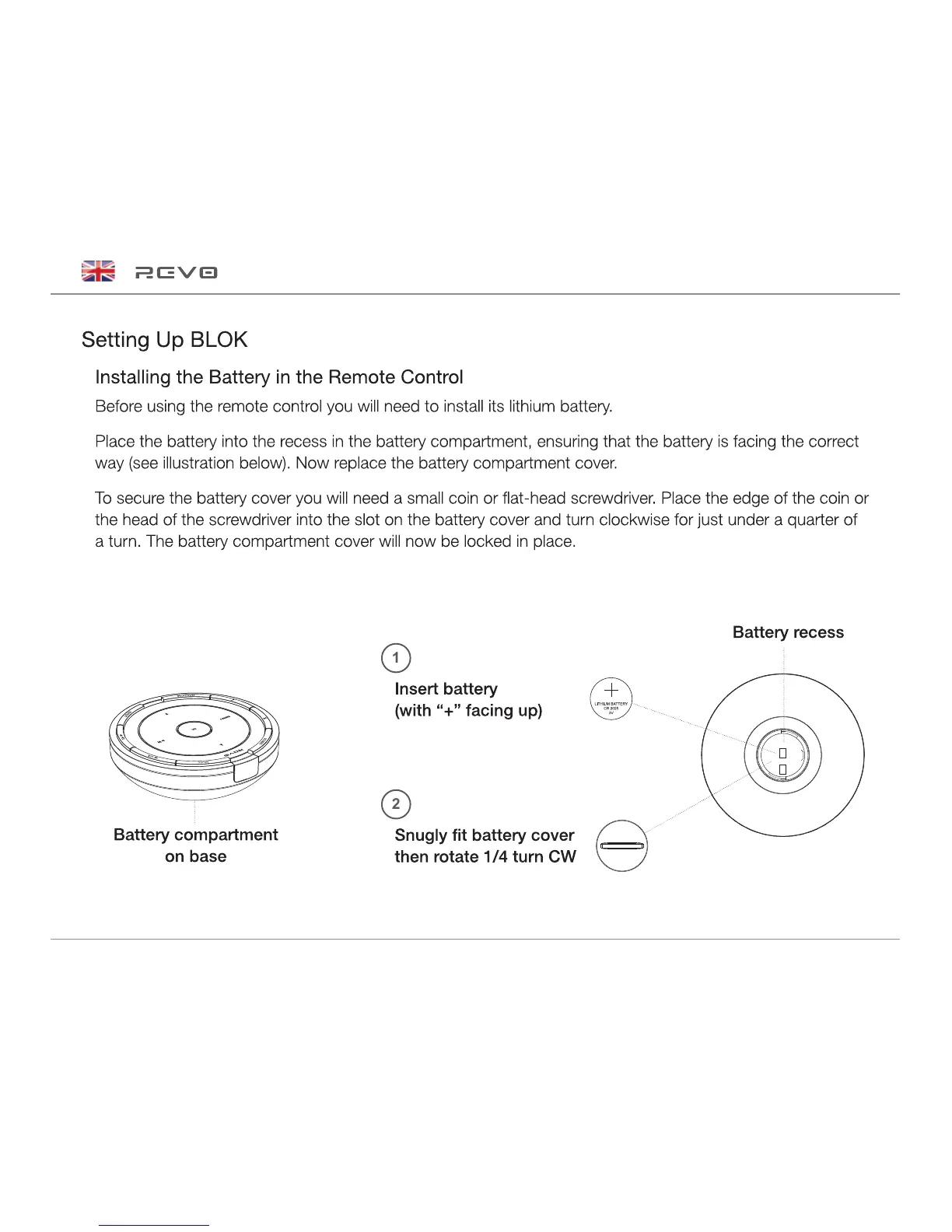 Revo BLOK - Setting Up BLOK; Installing the Remote Control Battery