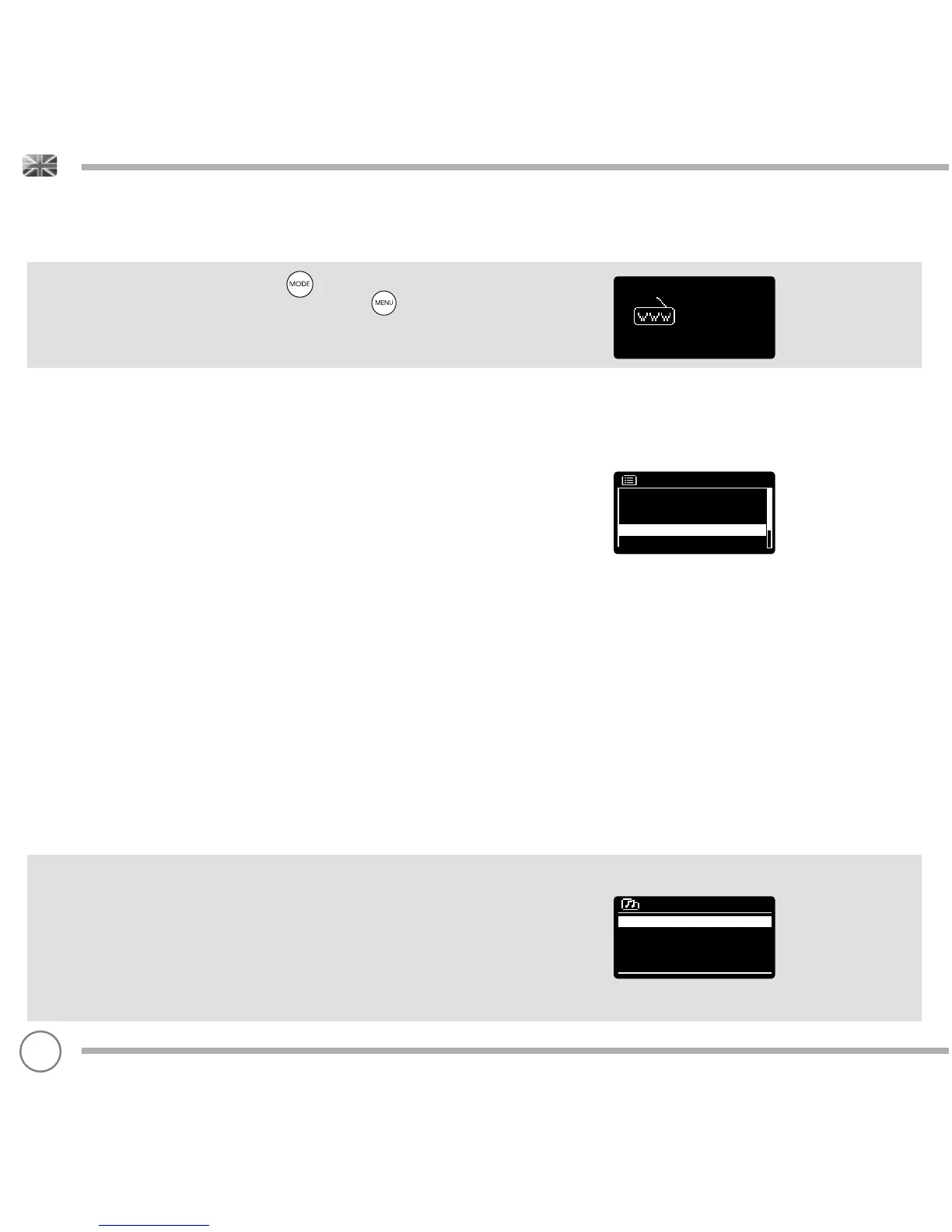 To enter INTERNET RADIO MODE, press the button until the INTERNET