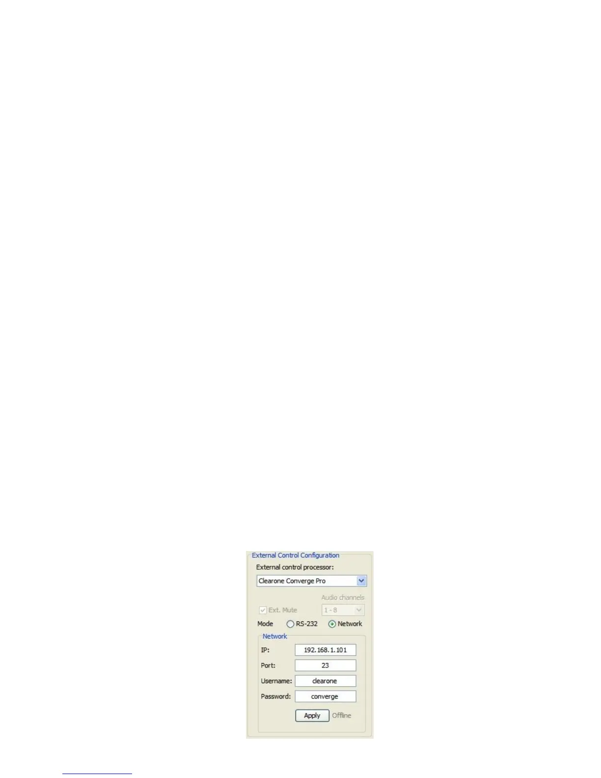 settings of the ClearOne DSP. The Base Station will only control the mutes of the DSP it is connected
