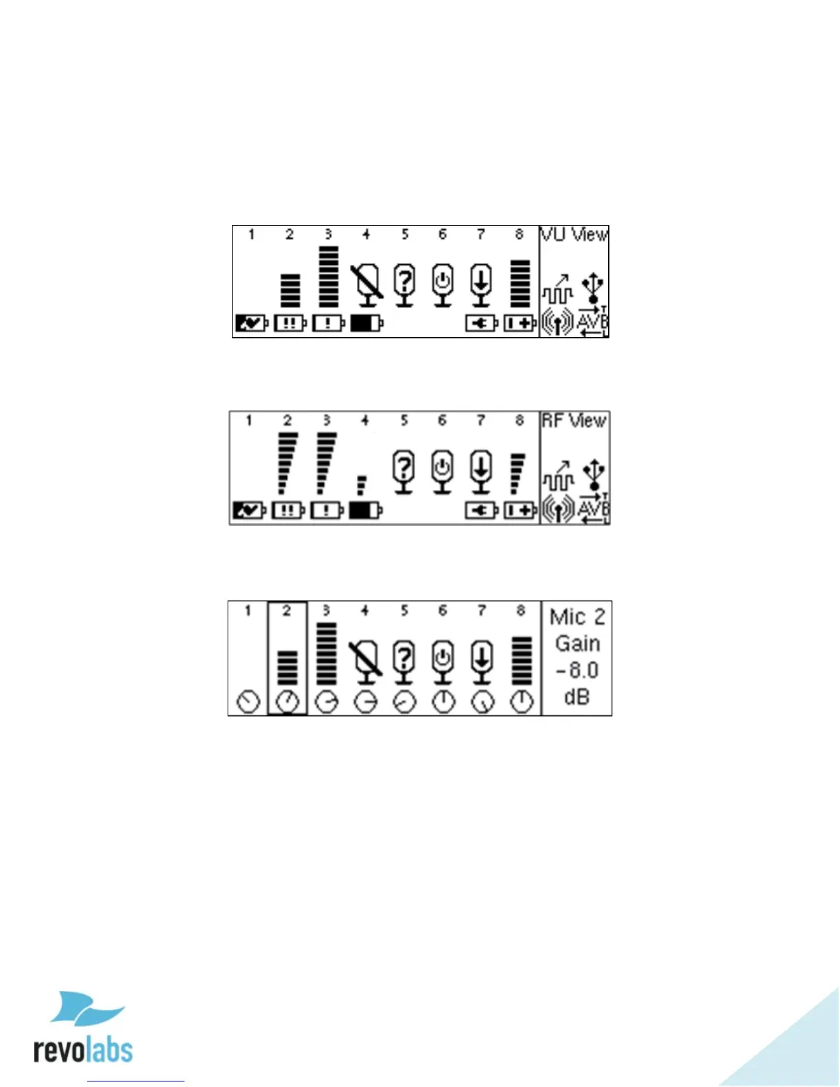 well as the input gain setting for each microphone channel, which the user can