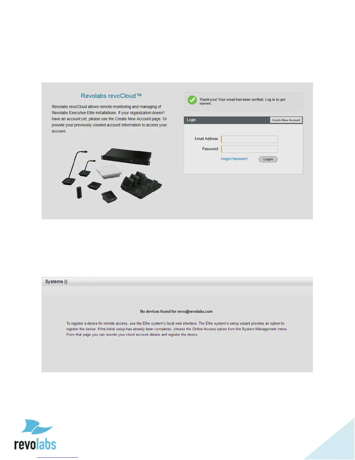 revoCloud web page, where you will see the verification message.
